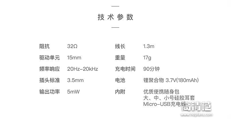全部附件包括了耳机、两组耳塞帽、充电线、说明书以及便携包。