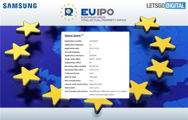 西班牙科技博客 LetsGoDigital 曝料称,三星刚向欧盟国家国家知识产权局(EUIPO)递交了“Space Zoom”商标注册申请。其申请注册类型为 9 / 42 类,用以智能机、平板、智能手环,商标logo叙述称机器设备上的手机软件可不在减少图象品质的状况下变大目标。